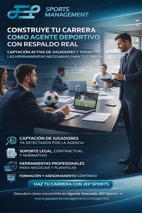 En JEP Sports Management incorporamos AGENTES ASOCIADOS que quieran desarrollar una carrera sólida, profesional y escalable dentro de una agencia en crecimiento constante.
