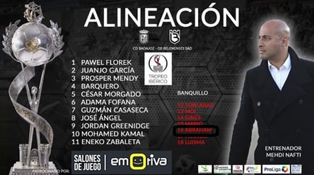 Abraham Rodríguez de la Concepción, jugador exclusivo de la agencia de fútbol JEP Sports Management, jugó ayer el partido del trofeo ibérico Badajoz-Os Belenenses (equipo de la primera división portuguesa) con el Badajoz de 2a división B. Salió en el minuto 72, y tuvo una destacada actuación, rozando el gol en un remate que se fue por encima del largero. Abraham es un jugador muy hábil, zurdo, trabajador, buena visión de juego, llegada a gol, buen golpeó a balón parado y muy técnico, de tan solo 19 años y que tiene un gran futuro por delante si sigue trabajando y progresando como hasta ahora. Felicidades desde JEP Sports Management a Abraham y su agente exclusivo de JEP Sports, Antonio Clares. Puedes ver más detalles de Abraham Rodríguez de la Concepción pinchando en su nombre o en la imágen de la alineación del Badajoz.