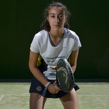 Jugadora de padel con mucha inteligencia, preparación, agresiva, dominando todos los golpes con gran seguridad y fortaleza mental.