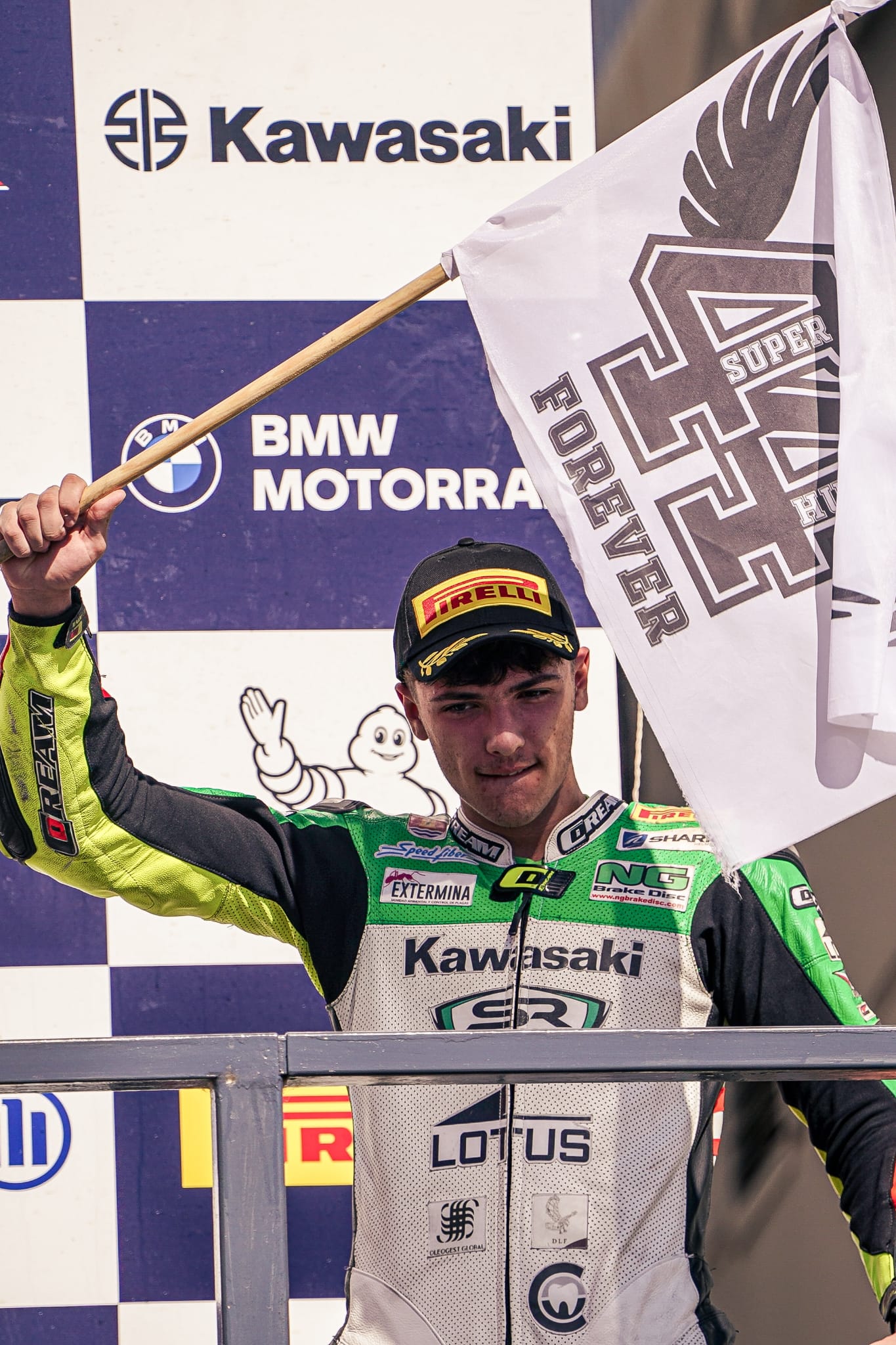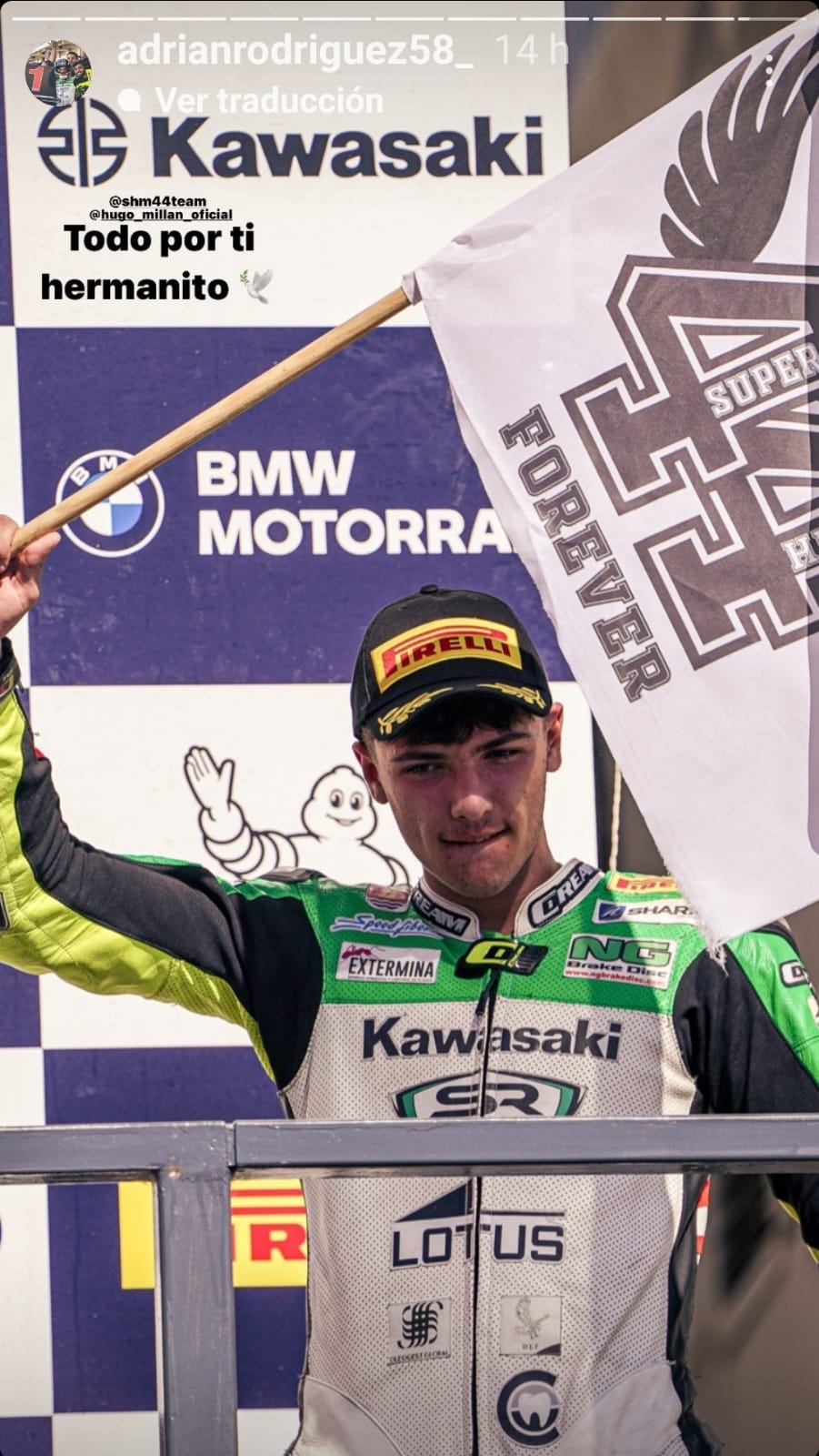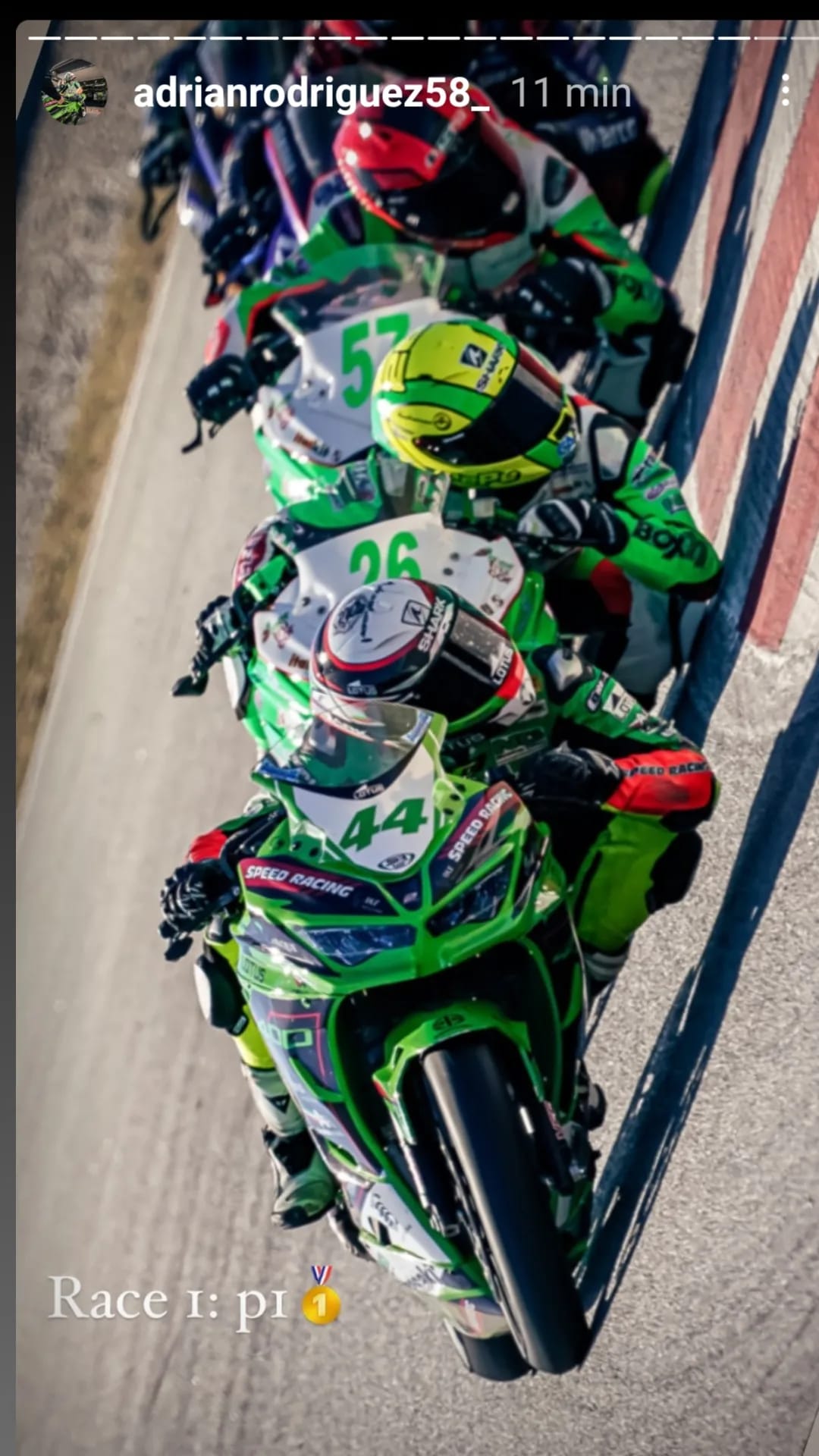 El pasado año, nuestro piloto de motociclismo Adrián Rodríguez, a parte de la copa Yamaha R3 Blu Cru en el world sbk ( mundial de superbike) hizo las dos últimas carreras del campeonato de España de superbike (ESBK) llegó con cambio de moto totalmente diferente al pilotaje de la Yamaha a Kawasaki al equipo Speed Racing. Cuando los 40 pilotos ya llevaban toda la temporada con sus monturas y equipos , Adrián llegó a un equipo nuevo, moto nueva, y consiguió en la última de Jerez en octubre, hacer un podium dejando sorprendidos a todo el paddock.