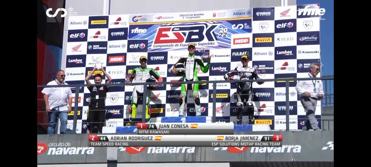 Nuestro piloto de motociclismo, Adrián Rodriguez, pese a numerosas dificultades, termina segundo en al general en la sexta prueba del campeonato de España de superbikes completada en Navarra. El piloto promocionado por la agencia de motociclismo de JEP Sports, se sobrepuso de las sanciones. Adrián Rodriguez fue sancionado el viernes con una long lap penalty, debido a un incidente con otro piloto en los entrenamientos libres. Tanto el equipo como el piloto estuvieron ensayando la estrategia para minimizar la penalización en carrera.