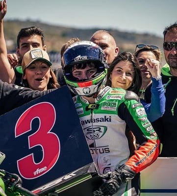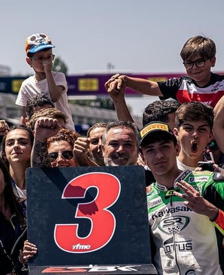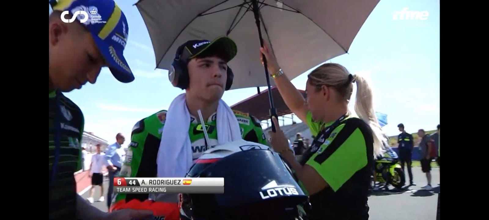 Adrián Rodríguez, piloto promocionado por la agencia de motociclismo de JEP Sports Management, nos ha dejado sin palabras con su espectacular actuación en el circuito de Aragón. Tras salir desde la décima posición debido a un error en la elección de neumáticos en la Q2, Adrián luchó con todo su corazón desde la segunda vuelta, para finalmente cruzar la meta en un impresionante tercer lugar, a tan solo 3 milésimas del segundo clasificado, ¡dejando al resto del grupo a más de 10 segundos de distancia!