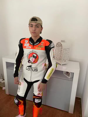 Podium tras pódium, victoria tras victoria, nos convence para apostar por su futuro en el motociclismo. Con tan sólo 7 años, en el campeonato de la Cuna de Campeones, tras solo 6 meses montando en una minimoto, consiguió meterse en el top 10 en la final del campeonato. Al ser un niño de tamaño grande, ha ido saltando de categoría de forma temprana, por lo que ha tenido que competir siempre con pilotos mayor que él. Sin embargo, sus resultados han sorprendido. Ya en su segundo año comenzó a lograr fácilmente pódiums y su capacidad de adaptación a las nuevas categorías ha sido increíble. El dorsal 58, lo luce en homenaje a su ídolo Marco Simoncelli, que admiraba ya desde muy pequeño.
