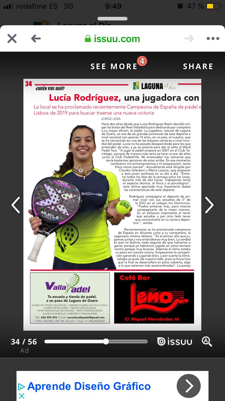 Lucía Rodríguez, jugadora profesional de padel promocionada por la agencia JEP Sports Management, disputó el torneo XV Aniversario Club de Padel y Tenis El Mirador, proclamándose campeona con su pareja. A su vez, con su compañera Palma Osorio, disputó también el ABS2000-CERVEZA VICTORIA donde cayeron en cuartos en un tercer set y un partido reñido contra la cabeza de serie 1 Borrero-Garcia. Felicidades Lucía por tus buenos resultados, a seguir por este camino!