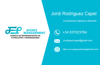 Jordi Rodríguez Capel es un agente de fútbol de JEP Sports Management que gestiona la coordinación adjunta a la dirección de la agencia. Agente con muchos contactos, conocimientos y buena selección de los jugadores que representa en exclusiva.