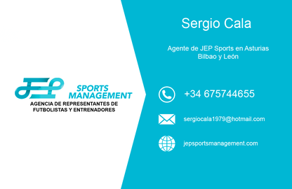 Sergio Cala es agente de fútbol asociado en Asturias de JEP Sports Management. Representante de futbolistas, con años de experiencia en el fútbol, coordinador, y con amplia experiencia y contactos con el fútbol en toda Asturias. Especialista en captar el mejor talento.