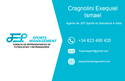 Exequiel Ismael Cragnolini, nacionalidad Argentina con más de 15 años ligado al deporte y marketing. Con experiencia, esfuerzo y dedicación para crecer junto a Jep Sports Management en países como México e Italia.