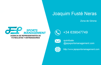 Joaquim Fusté Neras es un agente de fútbol de JEP Sports Management que gestiona la zona de Girona, con muy buenos contactos y muy buena captación de los mejores talentos de la provincia. Seriedad, honestidad, transparencia y trato profesional es la carta de presentación de Quim Fusté Neras.