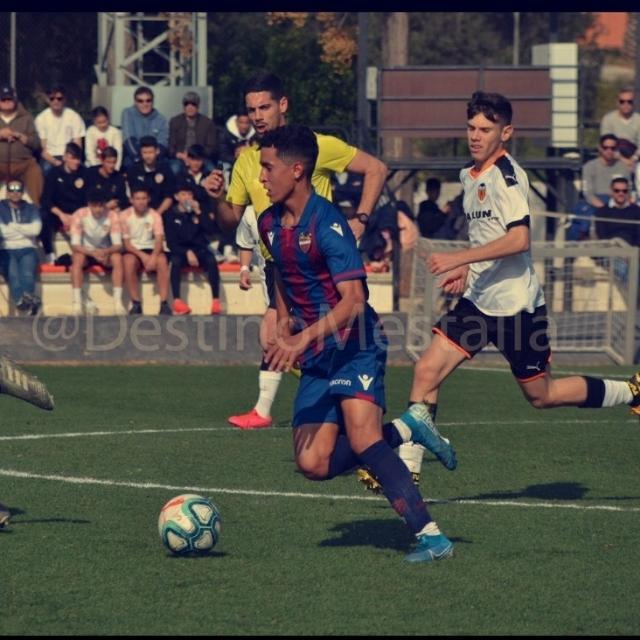 Gran victoria de la UD Levante, cadete A frente al Valencia CF, cadete A, por 3 a 1, con un gran partido de nuestro jugador exclusivo Younes Saifi, que completó un encuentro muy serio en defensa y en ataque. Como podrás ver en el vídeo, en la jugada del tercer gol de la UD Levante, Younes se va de su defensor y pone un centro medido para asistir a su compañero que bate a placer la portería valencianista. Felicidades Younes por tu progresión y a nuestro agente asociado, Manuel Reyes, por su seguimiento cercano al jugador. Puedes ver más detalles de Younes pinchando en la foto o en su nombre y debajo el vídeo de la asistencia.