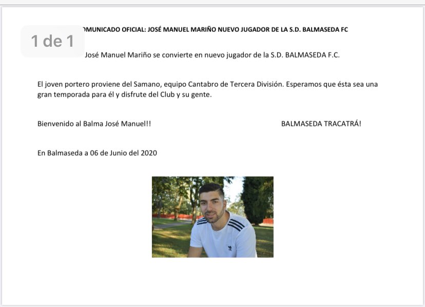 José Manuel Mariño, portero exclusivo de JEP Sports Management, de 22 años, ficha por la SD Balmaseda de la 3a división gracias a las fantásticas gestiones de nuestro agente asociado Sergio Cala, agente del portero en JEP Sports. Felicidades José Manuel de parte de todo el equipo de JEP Sports y agradecidos a la SD Balmaseda por confiar en nuestros agentes y jugadores. Puedes ver más detalles de José Manuel Mariño pinchando en la foto o en su nombre.