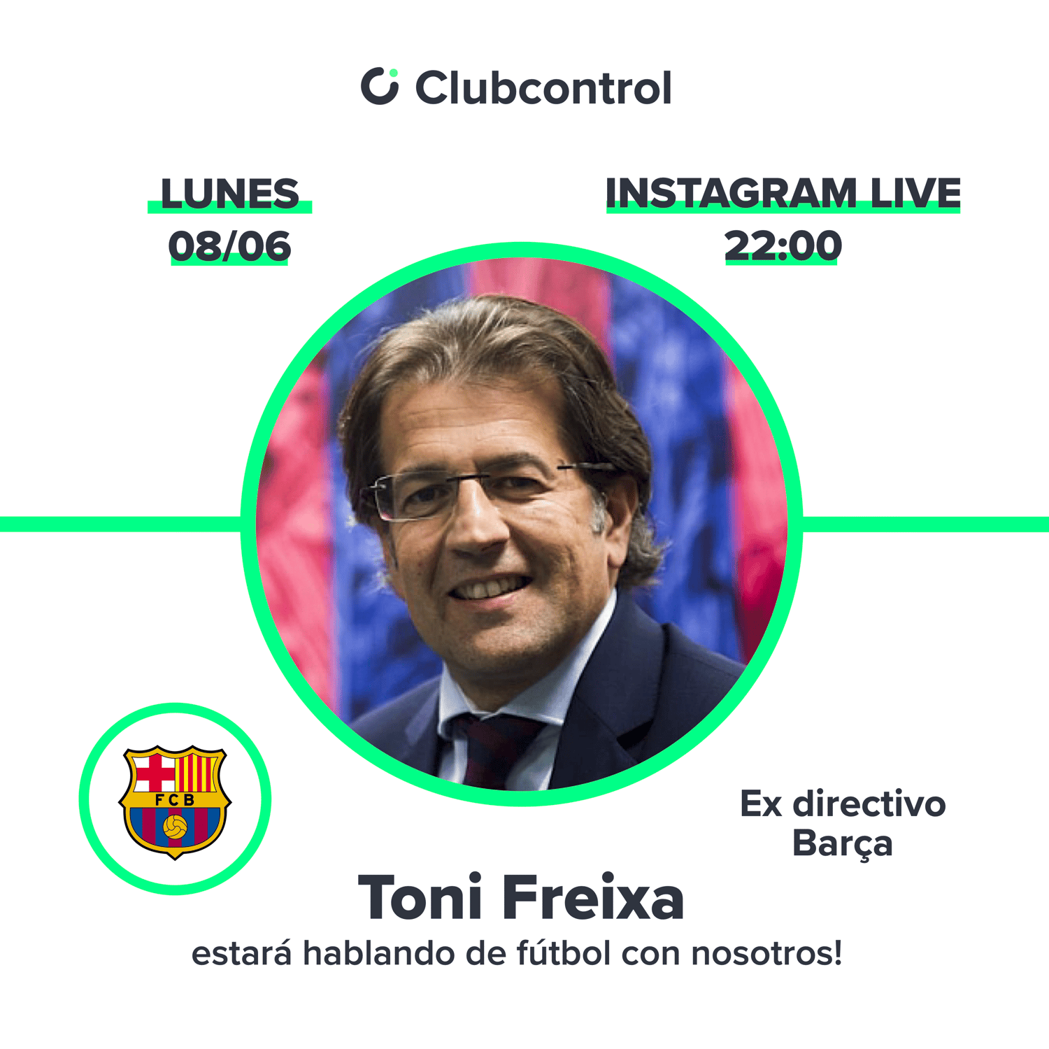 JEP Sports Management, agencia de fútbol asociada a ClubControl, os informa de la charla de hoy con Toni Freixa. El team de ClubControl os invita a la entrevista con Toni Freixa (ex directivo FC Barcelona). Hoy a las 22:00, en Live Instragram, para hablar de fútbol! No te lo pierdas. Será una entrevista muy interesante. ClubControl es la app ideal para la gestión y planificación deportiva de tu club de fútbol. No esperes más y contrata ya ClubControl.