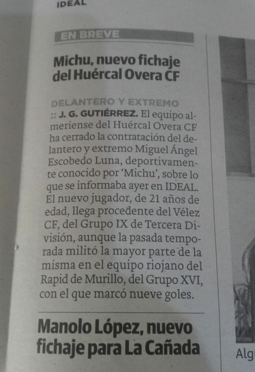 Michu, delantero de JEP Sports Management, de 21 años, ficha por el Huercal Overa de 3a división, después de cuajar una pasada temporada ya en la categoría con buenas cifras de goles y de participaciones. Un paso más en la carrera deportiva de este joven delantero. Felicidades Michu de parte de todo el equipo de JEP Sports Management!