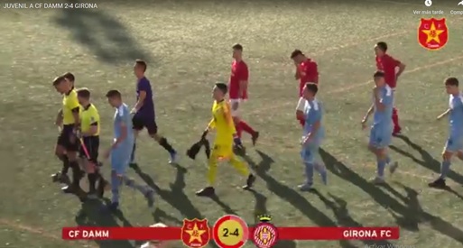 Enorme partido de juvenil dh disputado este fin de semana con nuestros jugadores Adrià Pladevall, del juvenil A del CF DAMM y Aitor Reinon, jugador del juvenil A del Girona FC. Un partido que en la primera parte se fue sin goles en el marcador, pero que en la segunda parte, por la propuesta de ambos equipos, se lograron hasta 6 goles, con un resultado final de 2 a 4 a favor del Girona CF.