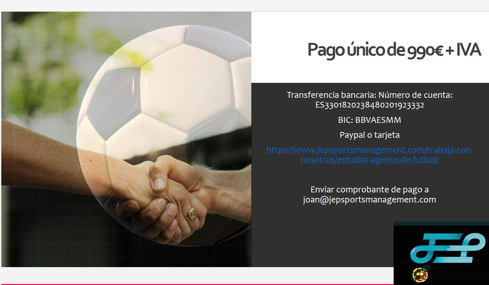 Curso de agente de fútbol + prácticas reales en agencia de fútbol profesional JEP Sports