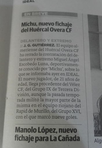 Michu, delantero de JEP Sports Management, de 21 años, ficha por el Huercal Overa de 3a división, después de cuajar una pasada temporada ya en la categoría con buenas cifras de goles y de participaciones. Un paso más en la carrera deportiva de este joven delantero. Felicidades Michu de parte de todo el equipo de JEP Sports Management!