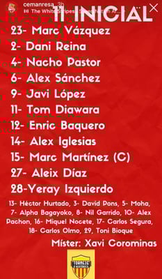 El Juvenil del CE Manresa empata a 1 contra el RCD Espanyol después de ponerse por delante en la primera parte. El RCD Espanyol tuvo la ocasión con un lanzamiento desde la pena máxima de avanzarse en el marcador, donde nuestro portero Marc Vazquez, con una enorme personalidad y clase, logró parar de forma muy segura estirándose por su lado derecho y adivinando la intención del jugador del RCD Espanyol. Felicidades a todo el equipo por el gran partido y el punto logrado ante un rival tan complicado y en especial a nuestro portero Marc Vazquez por su gran actuación. También felicitar a Josep Fontanals, agente asociado de JEP Sports que gestiona en exclusiva a Marc Vazquez por su fantástico seguimiento!
