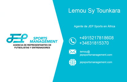 Lemou Sy Tounkara es un agente de fútbol de África de JEP Sports Management. Hombre de negocios, tiene buenos contactos de fútbol en su país y la seriedad, transparencia, discreción y buen trato son su tarjeta de presentación.