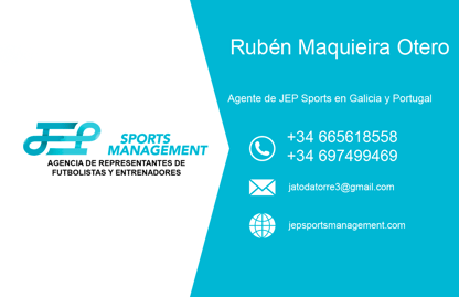 Agente de fútbol de Jep Sports Management, representante de fútbol de JEP Sports en Galicia y Portugal.
